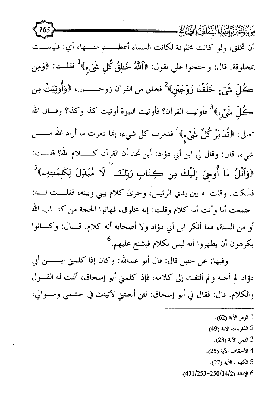 (¬6) الإبانة (2/ 14/250 - 253/ 431).
