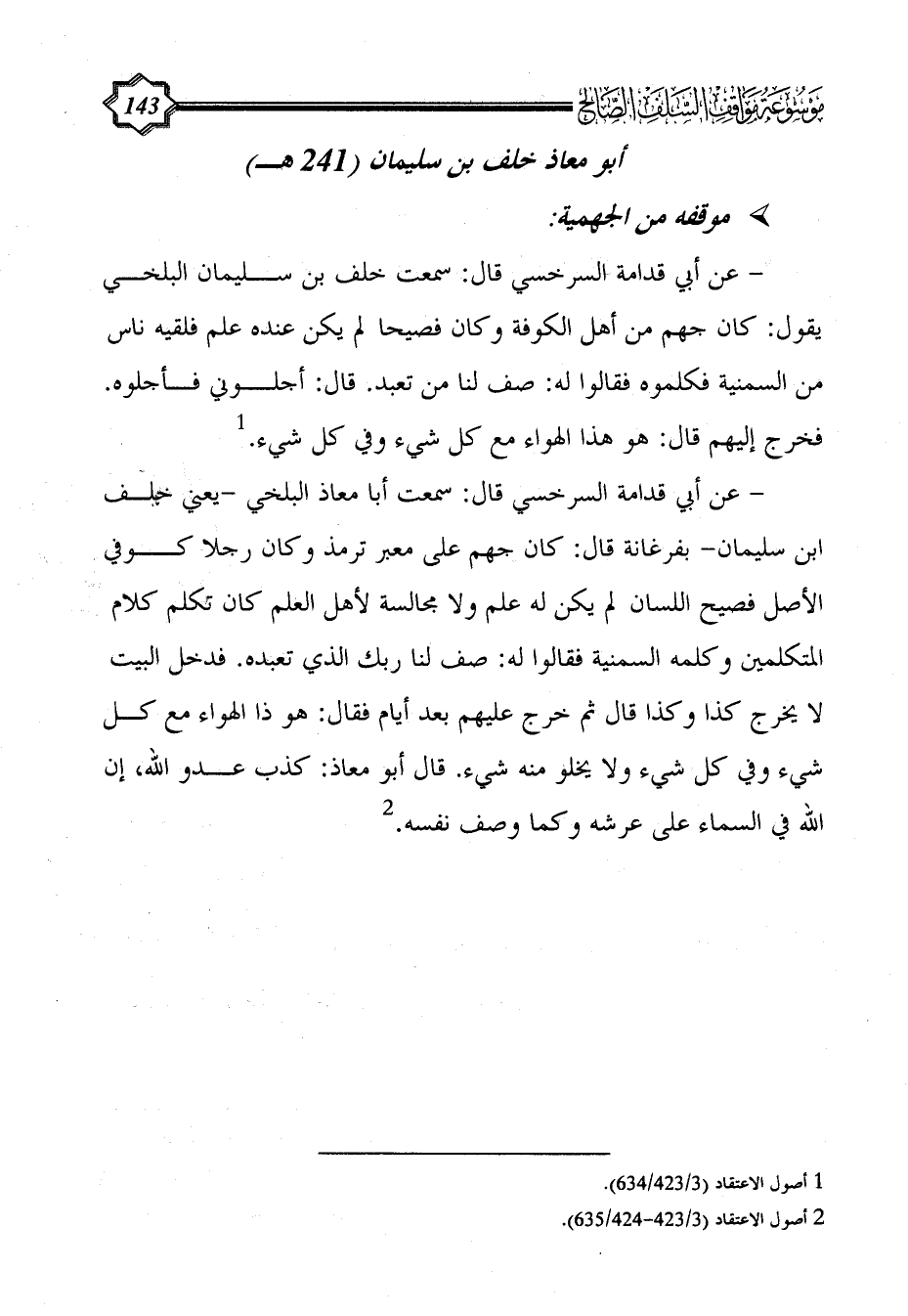 (¬2) أصول الاعتقاد (3/ 423 - 424/ 635).