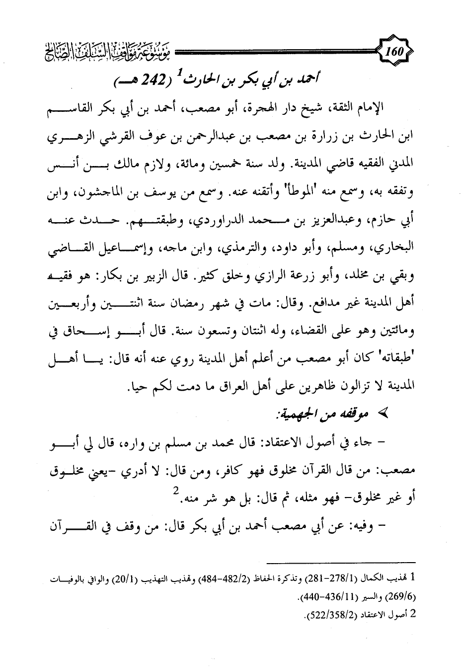 - جاء في أصول الاعتقاد: قال محمد بن مسلم بن واره، قال لي أبو مصعب: من قال القرآن مخلوق فهو كافر، ومن قال: لا أدري -يعني مخلوق أو غير مخلوق- فهو مثله، ثم قال: بل هو شر منه. (¬2)