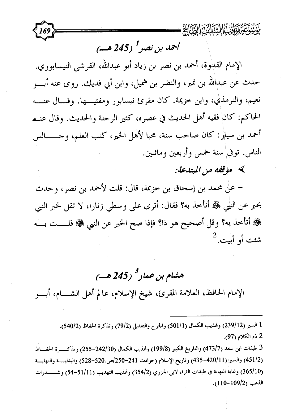 (¬3) طبقات ابن سعد (7/ 473) والتاريخ الكبير (8/ 199) وتهذيب الكمال (30/ 242 - 255) وتذكرة الحفاظ (2/ 451) والسير (11/ 420 - 435) وتاريخ الإسلام (حوادث 241 - 250/ص.520 - 528) والبداية والنهاية (10/ 365) وغاية النهاية في طبقات القراء لابن الجزري (2/ 354) وتهذيب التهذيب (11/ 51 - 54) وشذرات الذهب (2/ 109 - 110).