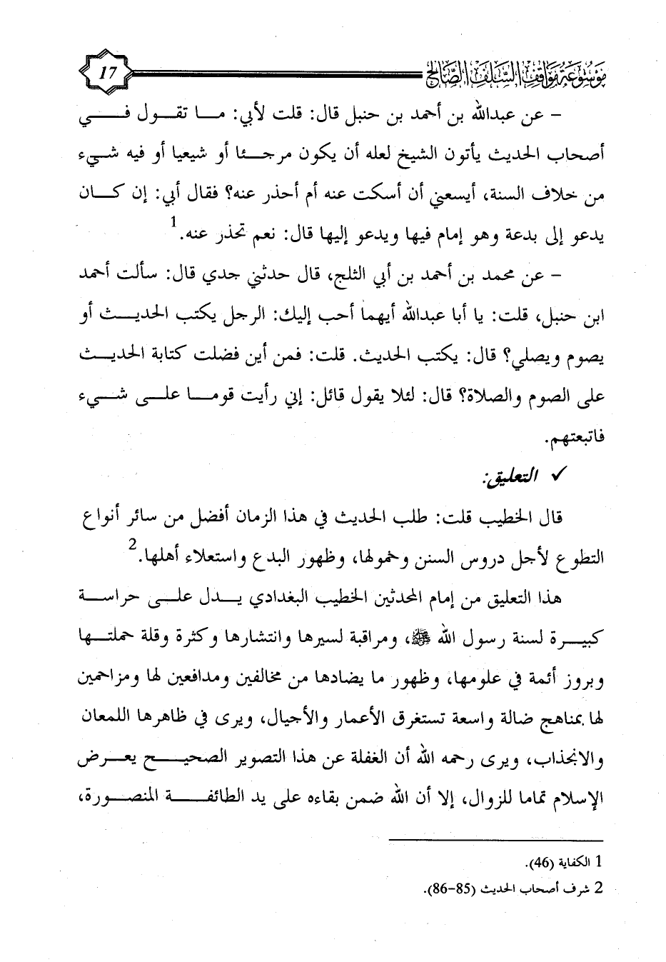 (¬2) شرف أصحاب الحديث (85 - 86).