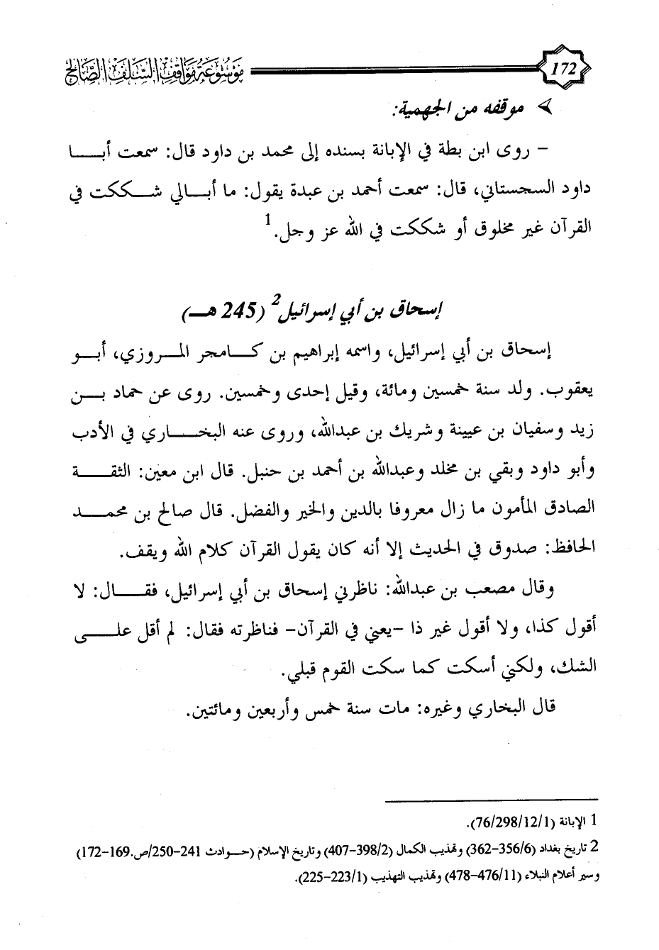 (¬2) تاريخ بغداد (6/ 356 - 362) وتهذيب الكمال (2/ 398 - 407) وتاريخ الإسلام (حوادث 241 - 250/ص.169 - 172) وسير أعلام النبلاء (11/ 476 - 478) وتهذيب التهذيب (1/ 223 - 225).