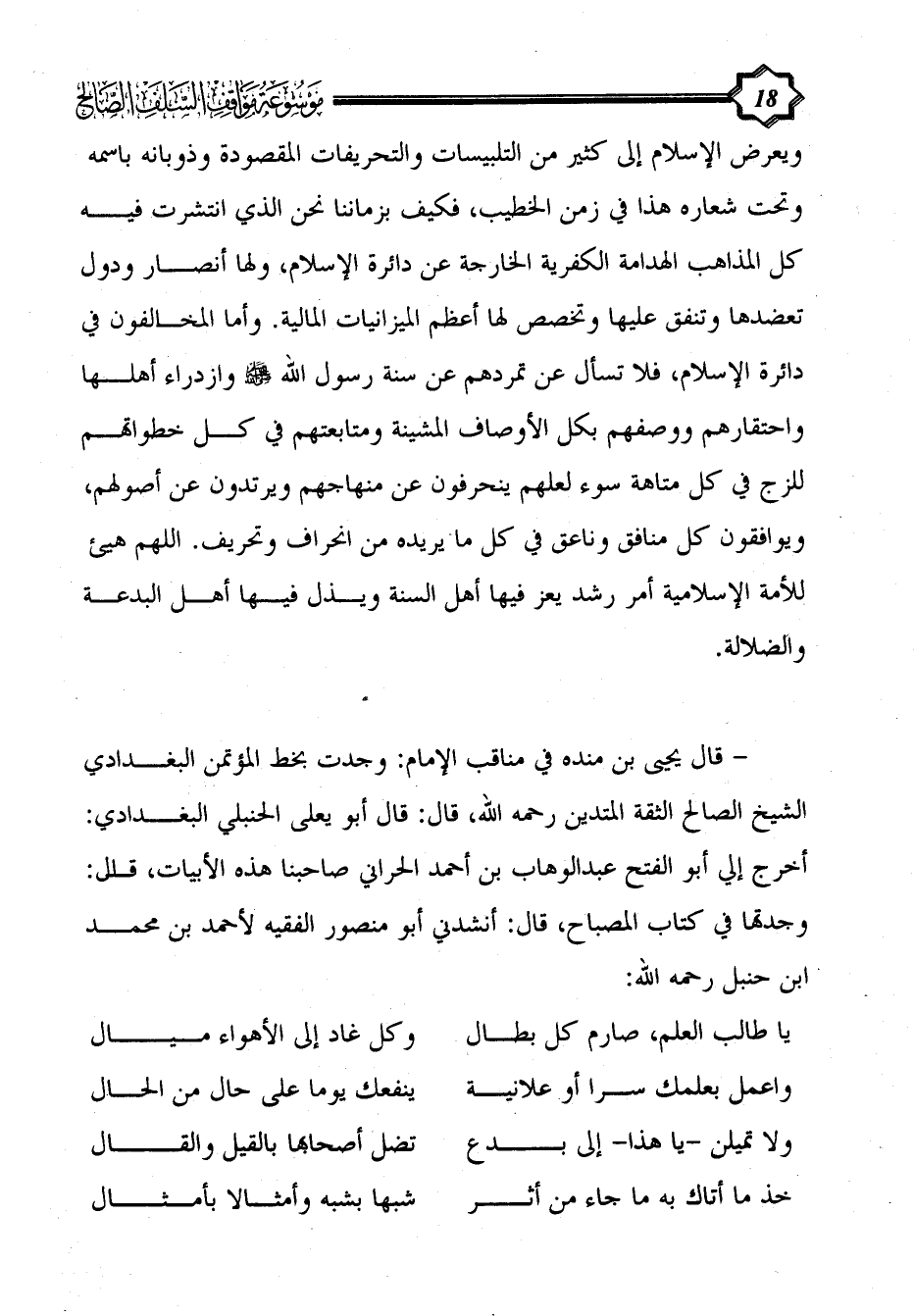 ولا تميلن -يا هذا- إلى بدع ... تضل أصحابها بالقيل والقال