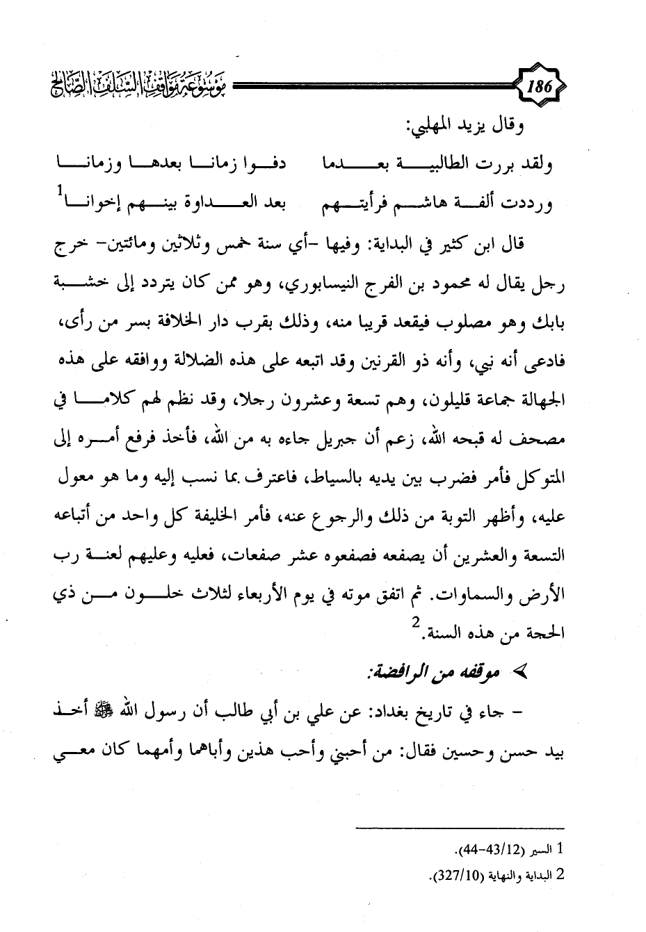 ورددت ألفة هاشم فرأيتهم ... بعد العداوة بينهم إخوانا (¬1)