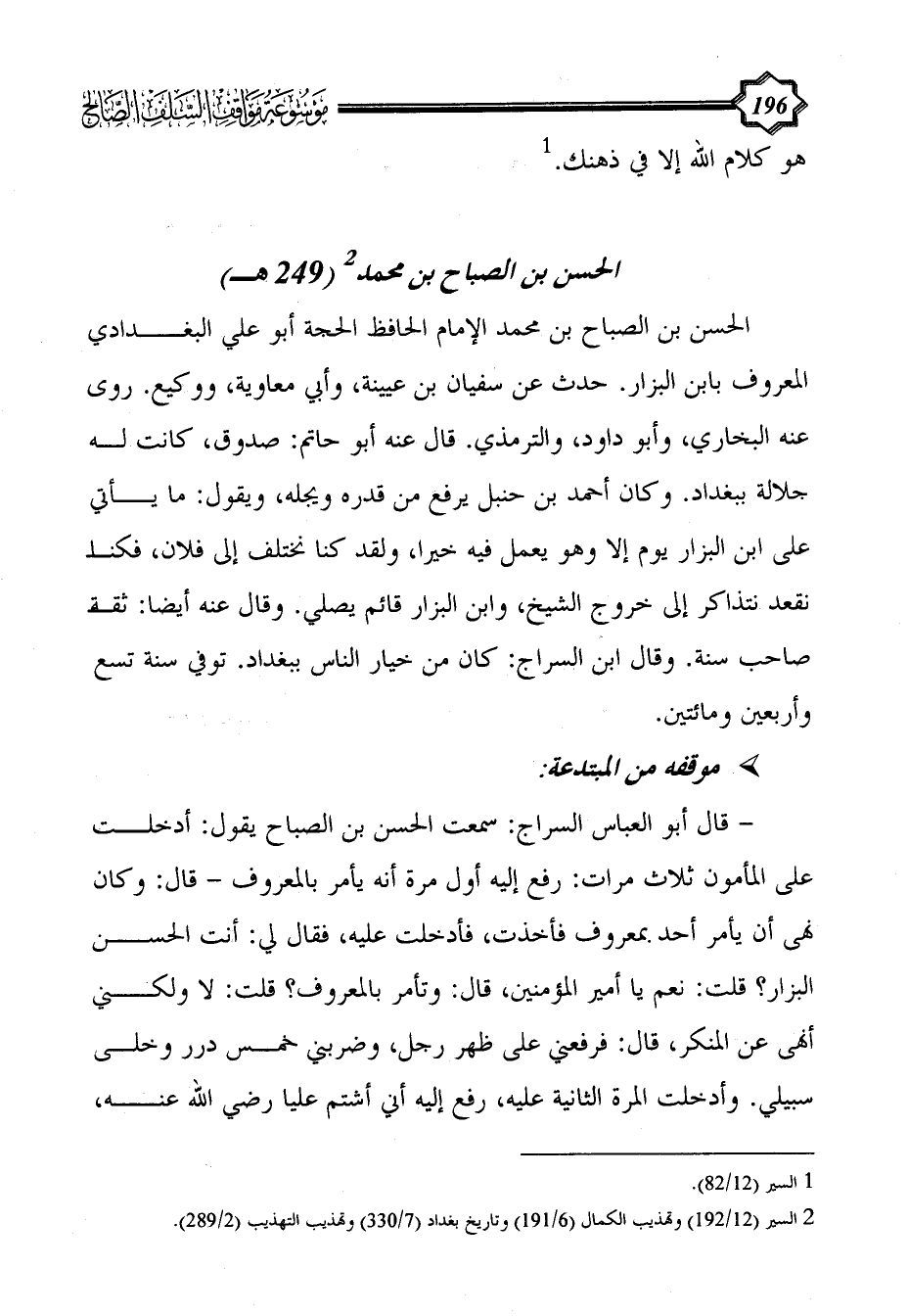 (¬2) السير (12/ 192) وتهذيب الكمال (6/ 191) وتاريخ بغداد (7/ 330) وتهذيب التهذيب (2/ 289).