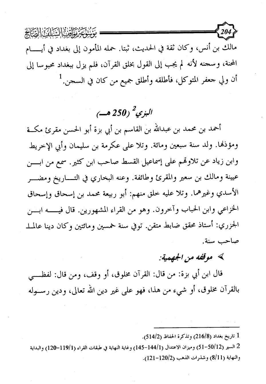 (¬2) السير (12/ 50 - 51) وميزان الاعتدال (1/ 144 - 145) وغاية النهاية في طبقات القراء (1/ 119 - 120) والبداية والنهاية (11/ 8) وشذرات الذهب (2/ 120 - 121).