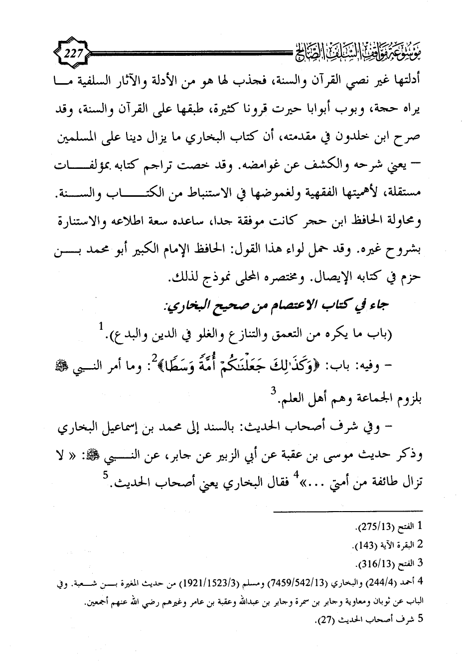جاء في كتاب الاعتصام من صحيح البخاري: