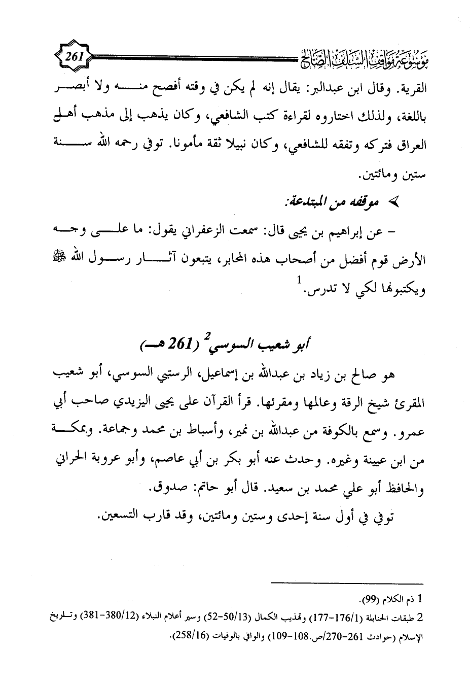 (¬2) طبقات الحنابلة (1/ 176 - 177) وتهذيب الكمال (13/ 50 - 52) وسير أعلام النبلاء (12/ 380 - 381) وتاريخ الإسلام (حوادث 261 - 270/ص.108 - 109) والوافي بالوفيات (16/ 258).