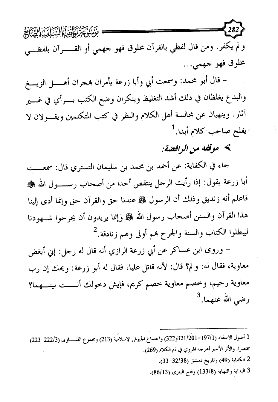 (¬1) أصول الاعتقاد (1/ 197 - 201/ 321و322) واجتماع الجيوش الإسلامية (213) ومجموع الفتاوى (3/ 222 - 223) مختصرا. والأثر الأخير أخرجه الهروي في ذم الكلام (269).