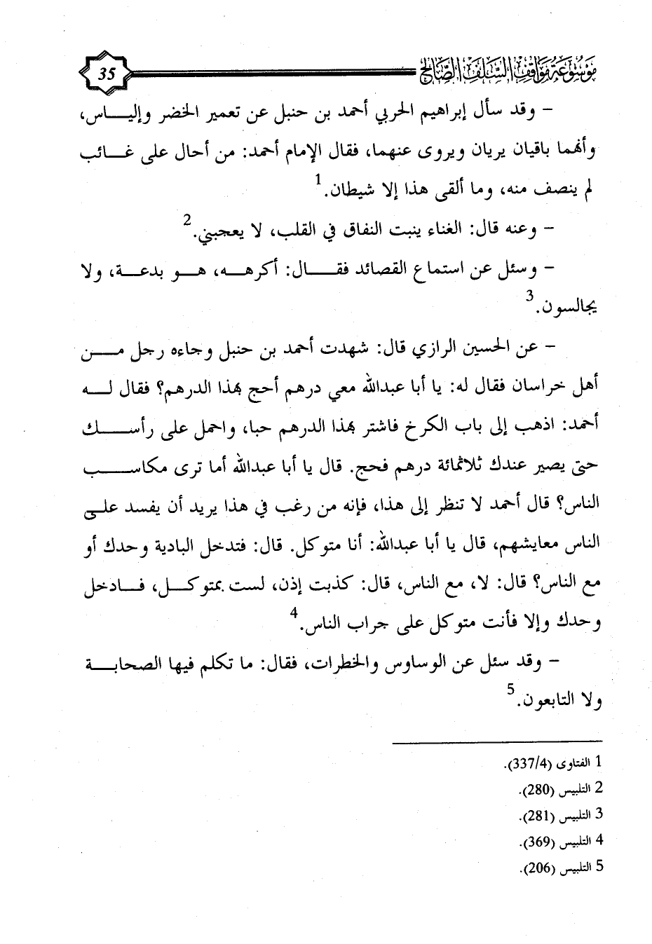 - وقد سئل عن الوساوس والخطرات، فقال: ما تكلم فيها الصحابة ولا التابعون. (¬5)