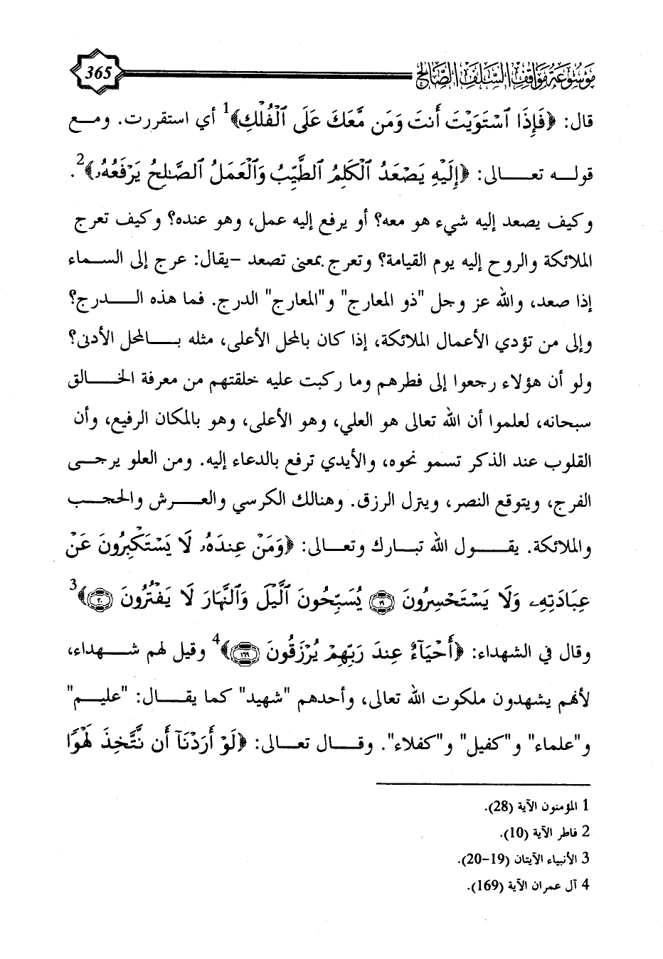 يقول الله تبارك وتعالى: {وَمَنْ عِنْدَهُ لَا يَسْتَكْبِرُونَ عَنْ عِبَادَتِهِ وَلَا يَسْتَحْسِرُونَ (19) يُسَبِّحُونَ اللَّيْلَ وَالنَّهَارَ لَا يَفْتُرُونَ} (¬3) وقال في الشهداء: {أَحْيَاءٌ عِنْدَ رَبِّهِمْ يُرْزَقُونَ} (¬4) وقيل لهم شهداء، لأنهم يشهدون ملكوت الله تعالى، وأحدهم "شهيد" كما يقال: "عليم" و"علماء" و"كفيل" و"كفلاء". وقال تعالى: {لَوْ أردنا أن نتخذ لهوًا