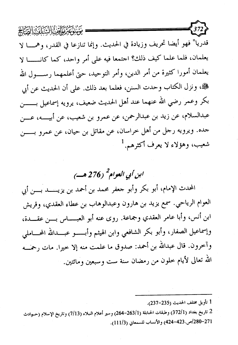 (¬2) تاريخ بغداد (1/ 372) وطبقات الحنابلة (1/ 263 - 264) وسير أعلام النبلاء (13/ 7) وتاريخ الإسلام (حوادث 271 - 280/ص.423 - 424) والأنساب للسمعاني (3/ 111).