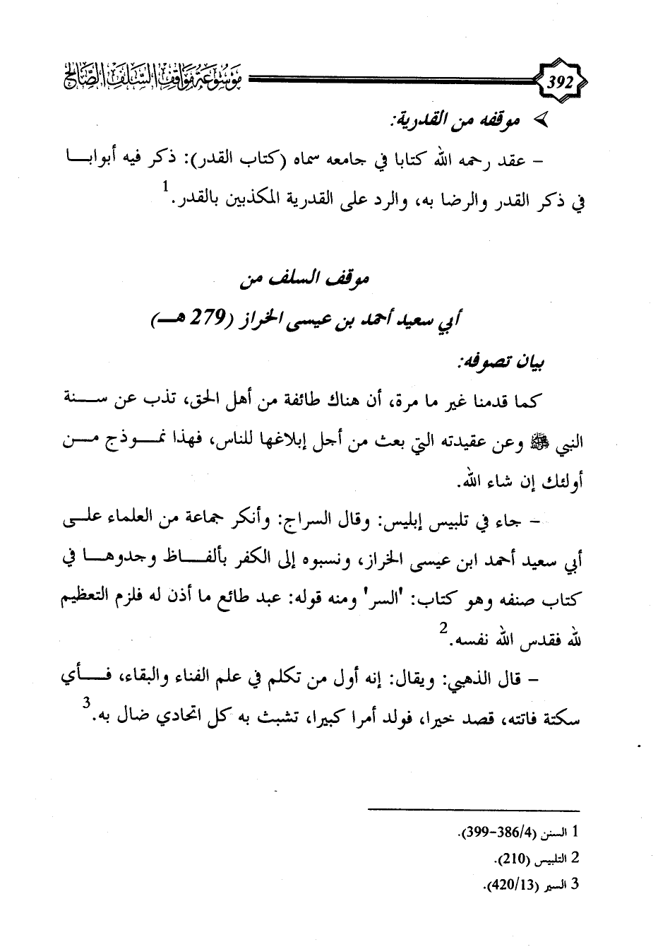 موقف السلف من أبي سعيد أحمد بن عيسى الخراز (279 هـ)