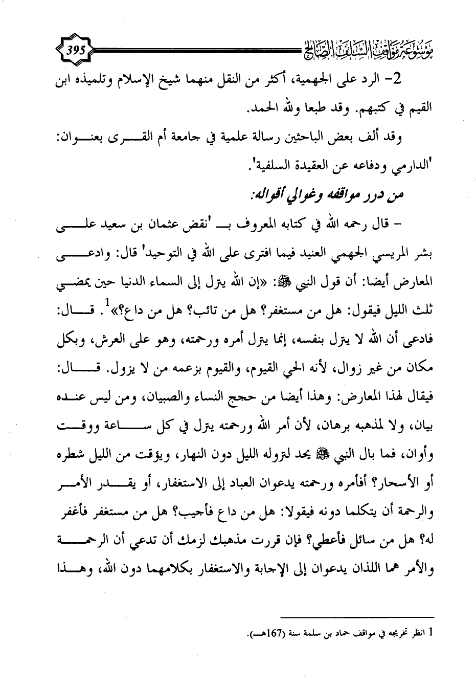 2 - الرد على الجهمية، أكثر من النقل منهما شيخ الإسلام وتلميذه ابن القيم في كتبهم. وقد طبعا ولله الحمد.