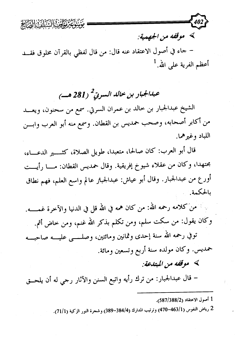 (¬1) أصول الاعتقاد (2/ 388/587).