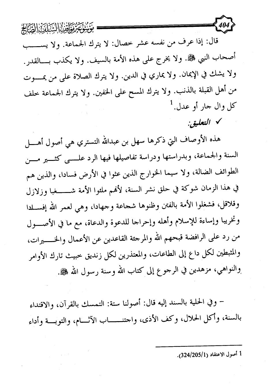 (¬1) أصول الاعتقاد (1/ 205/324).