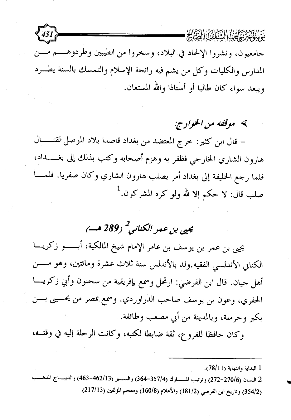يحيى بن عمر الكِنَانِي (¬2) (289 هـ)
