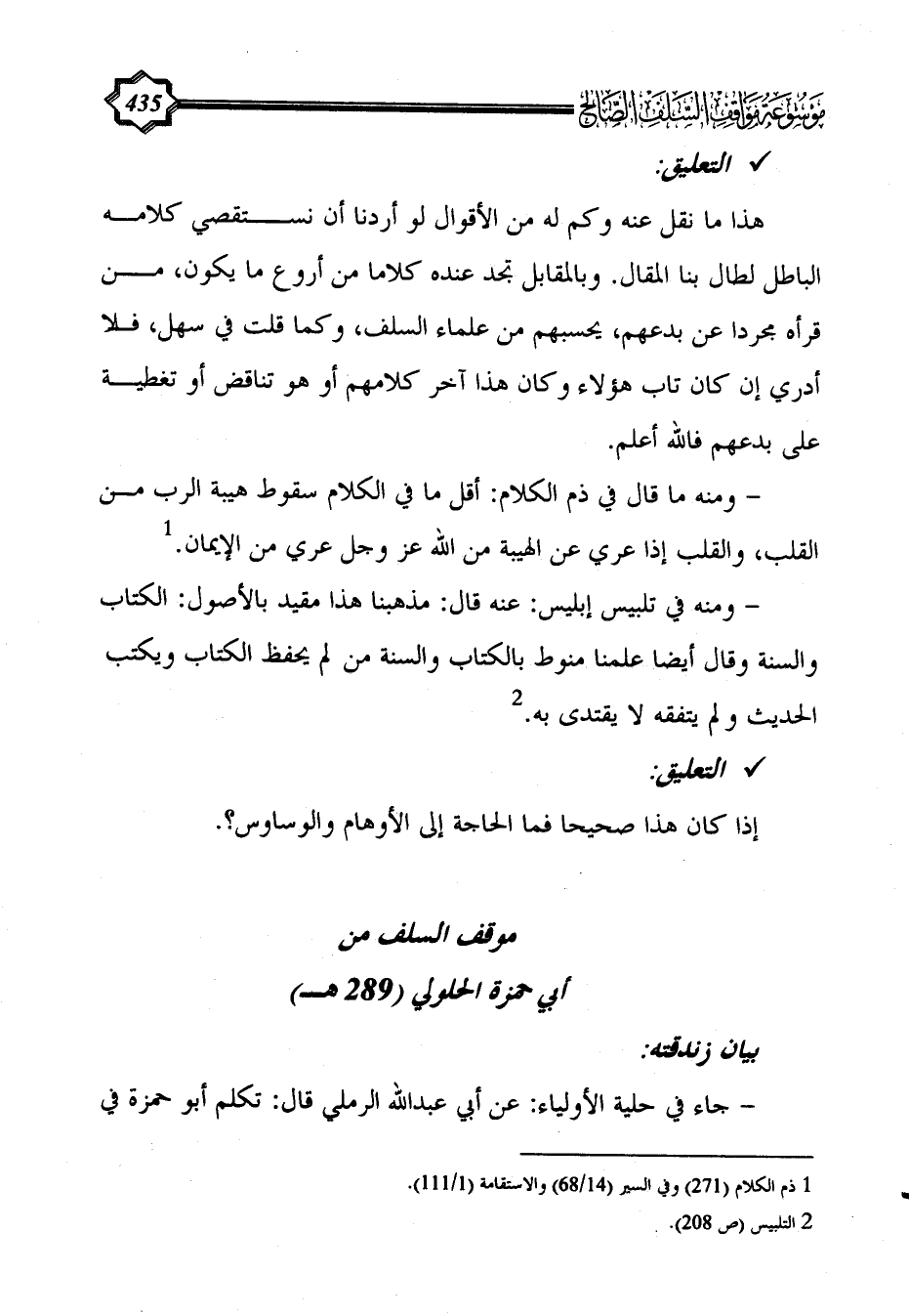(¬1) ذم الكلام (271) وفي السير (14/ 68) والاستقامة (1/ 111).