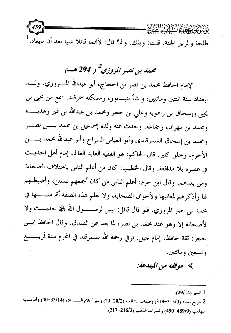 محمد بن نصر المروزي (¬2) (294 هـ)