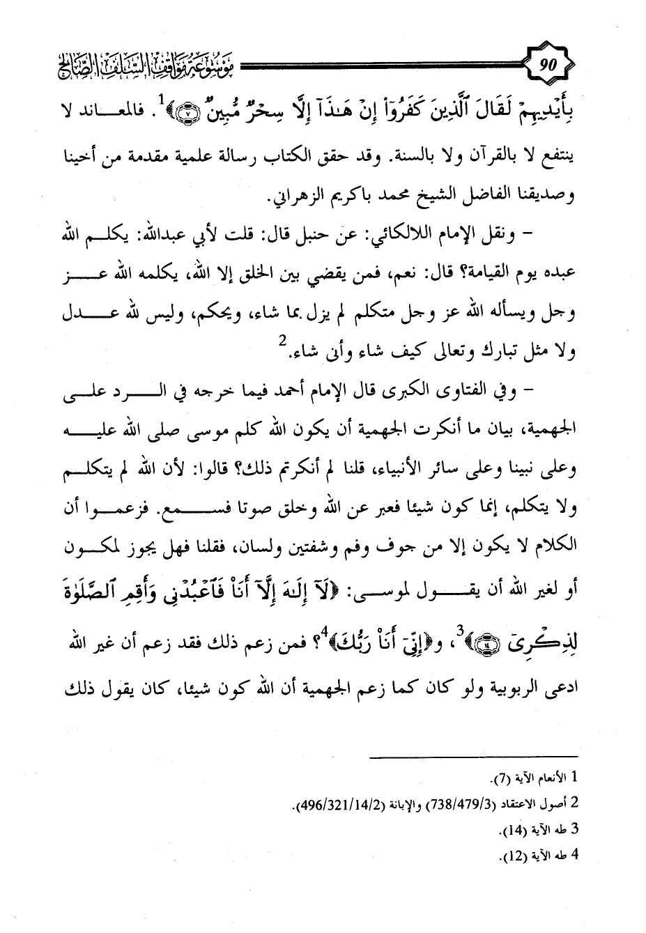 بِأَيْدِيهِمْ لَقَالَ الَّذِينَ كَفَرُوا إِنْ هَذَا إِلَّا سِحْرٌ مُبِينٌ} (¬1). فالمعاند لا ينتفع لا بالقرآن ولا بالسنة. وقد حقق الكتاب رسالة علمية مقدمة من أخينا وصديقنا الفاضل الشيخ محمد باكريم الزهراني.