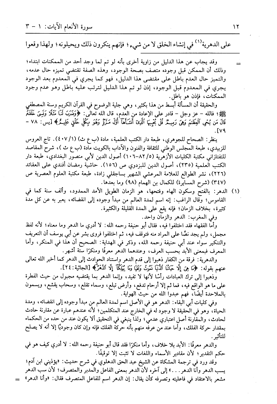 على الدهرية في إنشاء الخلق لا من شيء؛ فإنهم ينكرون ذلك ويحيلونه؛ ولهذا وقعوا