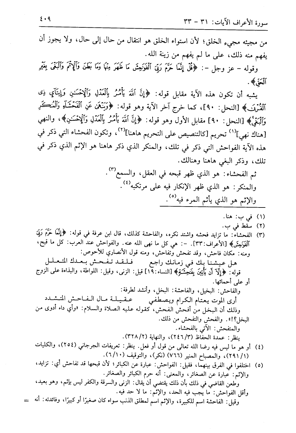 وقوله - عَزَّ وَجَلَّ -: (قُلْ إِنَّمَا حَرَّمَ رَبِّيَ الْفَوَاحِشَ مَا ظَهَرَ مِنْهَا وَمَا بَطَنَ وَالْإِثْمَ وَالْبَغْيَ بِغَيْرِ الْحَقِّ ... (33)
