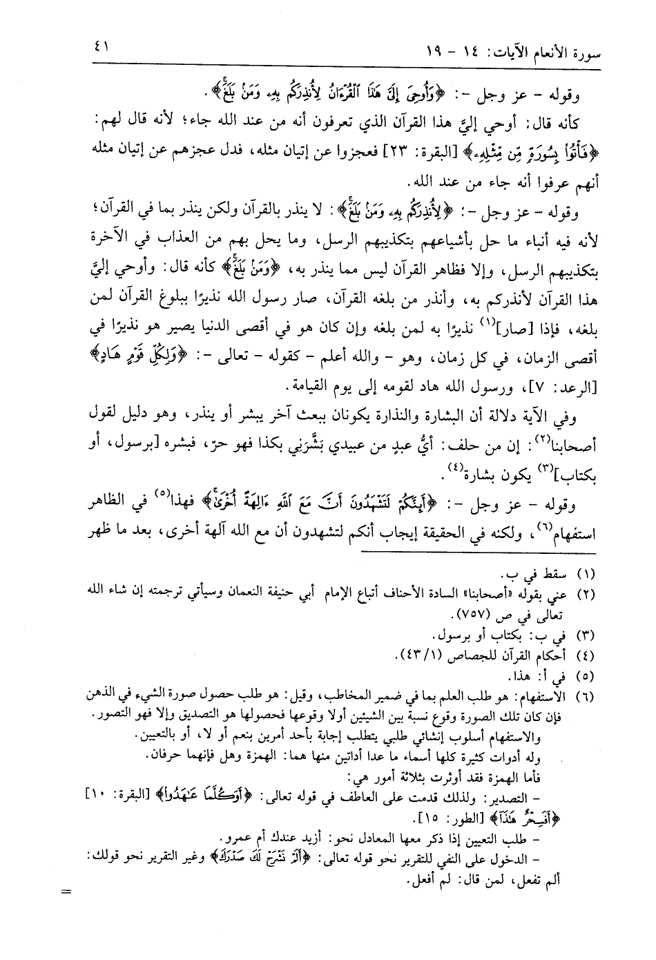 وقوله - عَزَّ وَجَلََّ: (وَأُوحِيَ إِلَيَّ هَذَا الْقُرْآنُ لِأُنْذِرَكُمْ بِهِ وَمَنْ بَلَغَ).