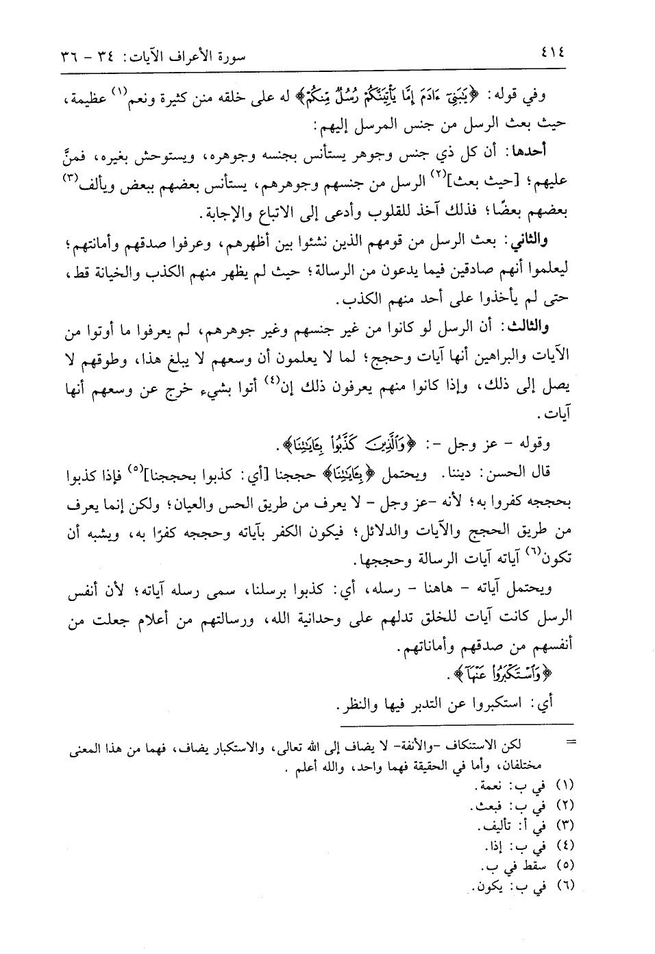 وفي قوله: (يَا بَنِي آدَمَ إِمَّا يَأْتِيَنَّكُمْ رُسُلٌ مِنْكُمْ) له على خلقه منن كثيرة ونعم عظيمة، حيث بعث الرسل من جنس المرسل إليهم: