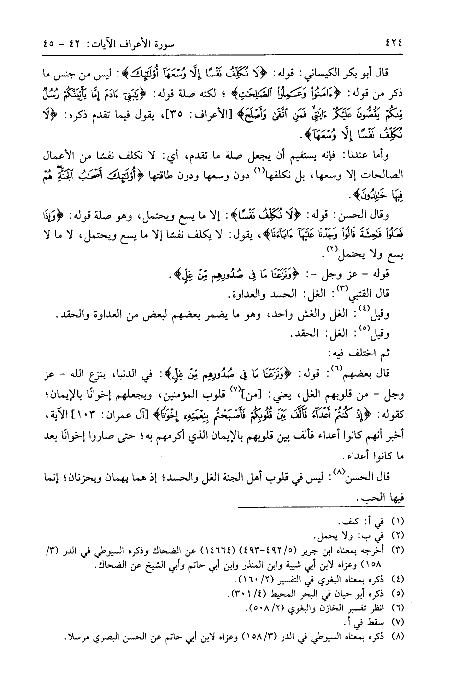 قوله - عَزَّ وَجَلَّ -: (وَنَزَعْنَا مَا فِي صُدُورِهِمْ مِنْ غِلٍّ ... (43)