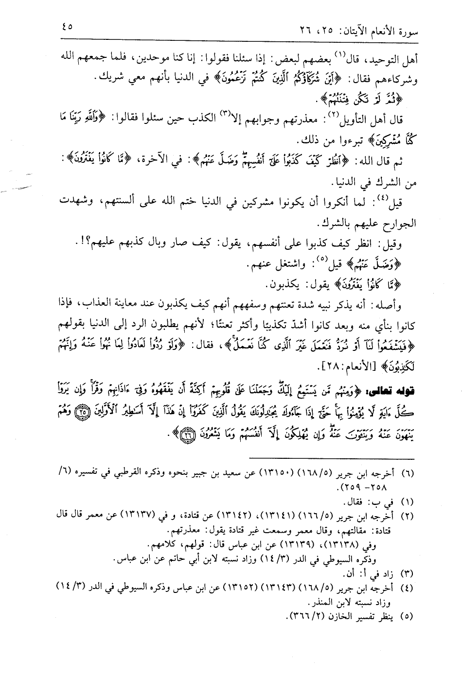 ثم قال اللَّه: (انْظُرْ كَيْفَ كَذَبُوا عَلَى أَنْفُسِهِمْ وَضَلَّ عَنْهُمْ ... (24) في الآخرة، (مَا كَانُوا يَفْتَرُونَ): من الشرك في الدنيا.