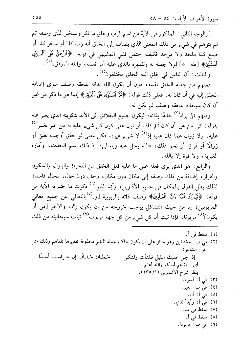 والوجه الثاني: المذكور في الآية من اسم الرب وخلق ما ذكر وتسخير الذي وصفه ثم لم يتوهم في شيء من ذلك المعنى الذي يضاف إلى الخلق أنه رب كذا أو سخر كذا أو صنع كذا ملحد ولا موحد فكيف احتمل قلبي المشبهي في قوله: (الرَّحْمَنُ عَلَى الْعَرْشِ اسْتَوَى)، لولا جهله به وتقديره بالذي عليه أمر نفسه، واللَّه الموفق.