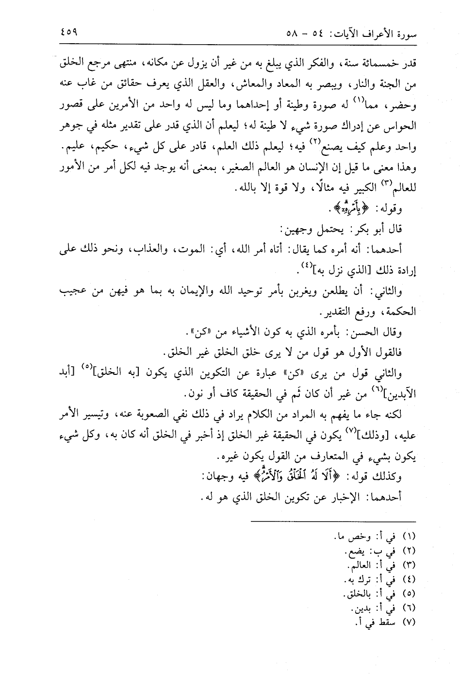 وكذلك قوله: (أَلَا لَهُ الْخَلْقُ وَالْأَمْرُ) فيه وجهان: