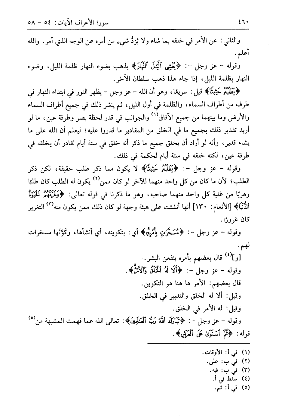 وقوله - عَزَّ وَجَلَّ -: (تَبَارَكَ اللَّهُ رَبُّ الْعَالَمِينَ): تعالى اللَّه عما فهمت المشبهة من قوله: (ثُمَّ اسْتَوَى عَلَى الْعَرْشِ).