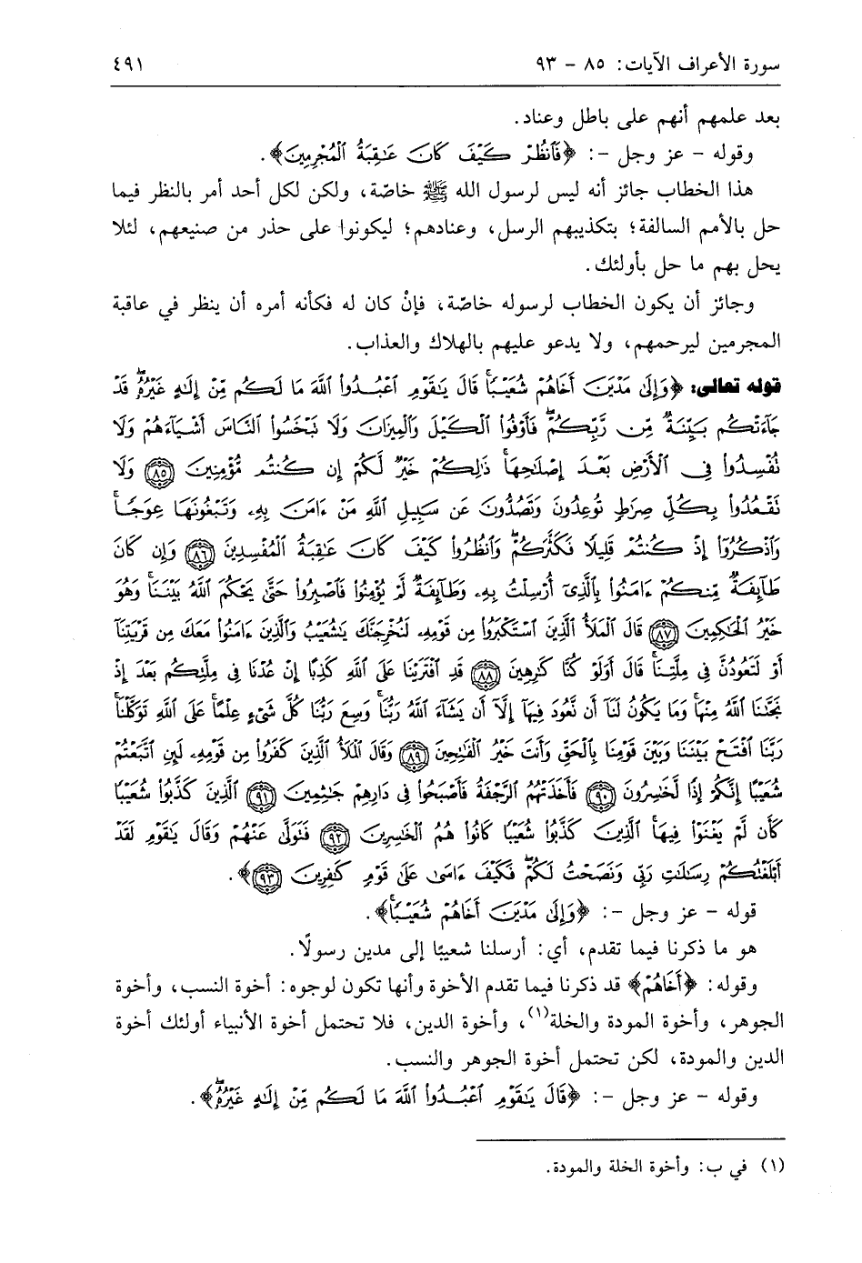 قوله - عَزَّ وَجَلَّ -: (وَإِلَى مَدْيَنَ أَخَاهُمْ شُعَيْبًا).