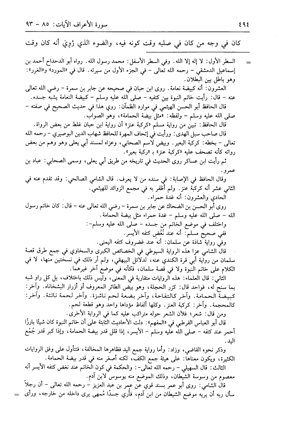 كان في وجه من كان في صلبه وقت كونه فيه، والضوء الذي رُوِيَ أنه كان وقت