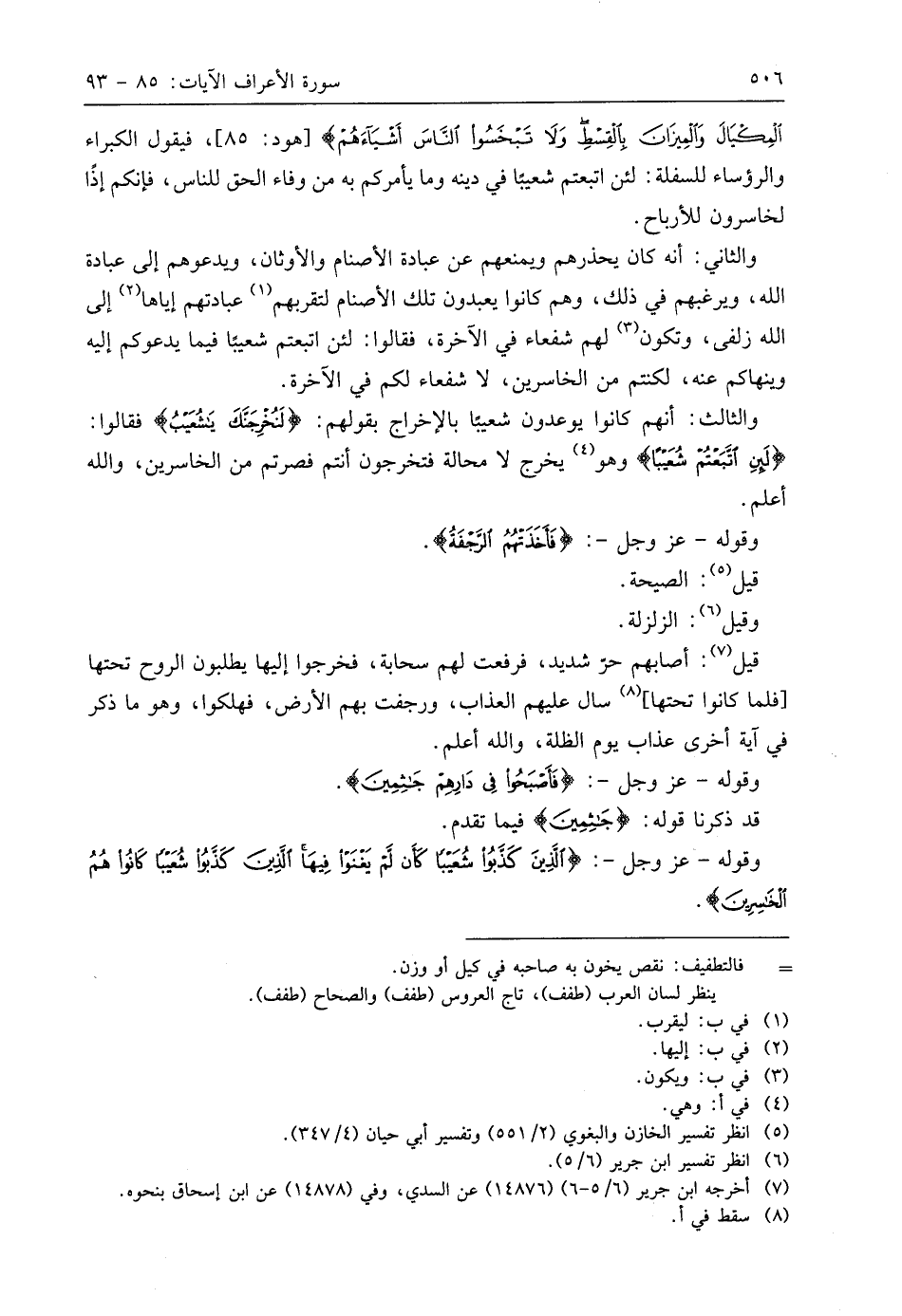 وقوله - عَزَّ وَجَلَّ -: (فَأَخَذَتْهُمُ الرَّجْفَةُ ... (91)