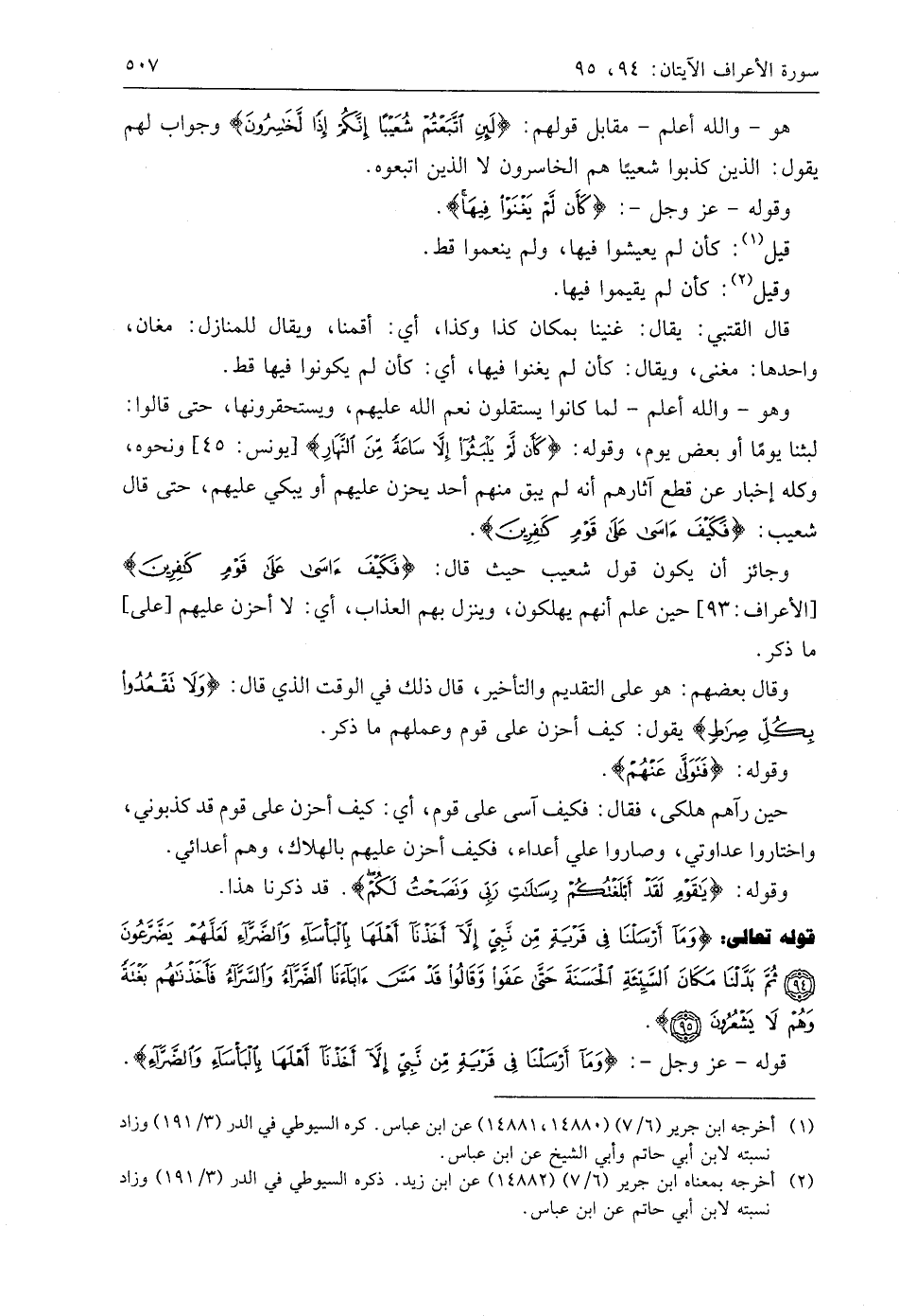 وقَالَ بَعْضُهُمْ: هو على التقديم والتأخير، قال ذلك في الوقت الذي قال: (وَلَا تَقْعُدُوا بِكُلِّ صِرَاطٍ) ويقول: كيف أحزن على قوم وعملهم ما ذكر.