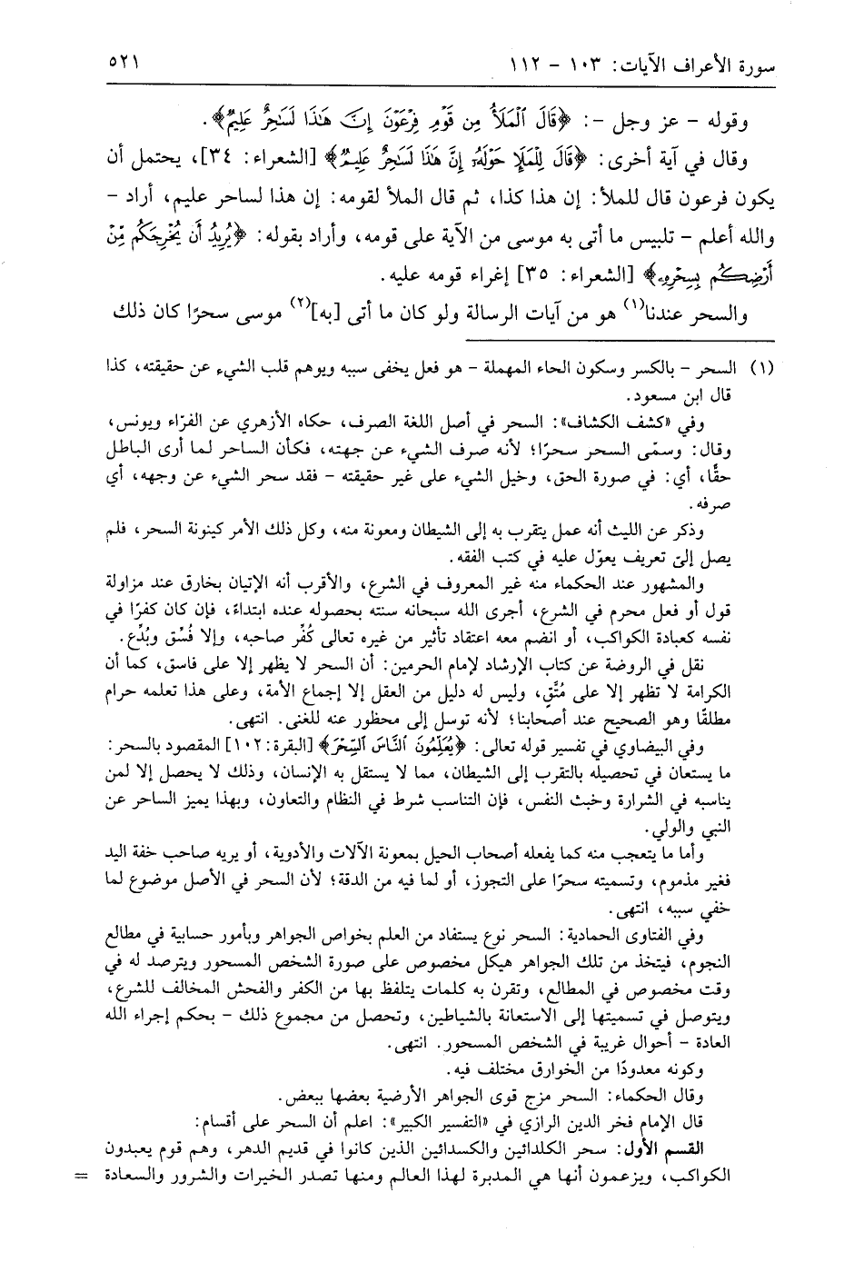 وقوله - عَزَّ وَجَلَّ -: (قَالَ الْمَلَأُ مِنْ قَوْمِ فِرْعَوْنَ إِنَّ هَذَا لَسَاحِرٌ عَلِيمٌ (109)