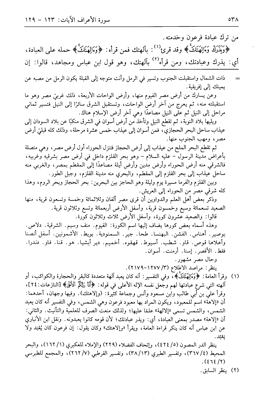 (وَيَذَرَكَ وَآلِهَتَكَ) وقد قرئ: [(وَإِلِاهَتِكَ)] فمن قرأه: [(وَإِلِاهَتِكَ)] حمله على العبادة، أي: يذرك وعبادتك، ومن قرأه [(وَآلِهَتَكَ)]، وهو قول ابن عَبَّاسٍ ومجاهد، قالوا: إن