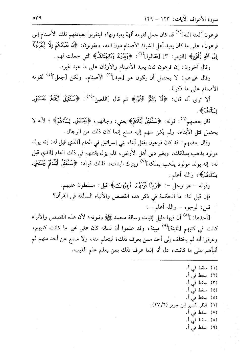 ألا ترى أنه قال: (أَنَا رَبُّكُمُ الْأَعْلَى) ثم قال اللعين: (سَنُقَتِّلُ أَبْنَاءَهُمْ وَنَسْتَحْيِي نِسَاءَهُمْ).