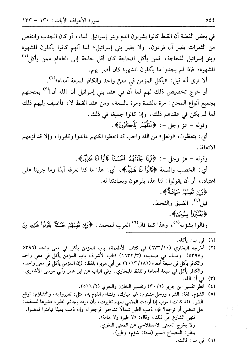 ألا ترى أنه قيل: " يأكل المؤمن في معيٍّ واحد والكافر لسبعة أمعاء ".