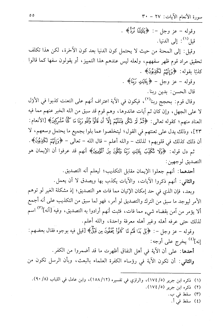 وقوله - عَزَّ وَجَلَّ -: (يَا لَيْتَنَا نُرَدُّ).