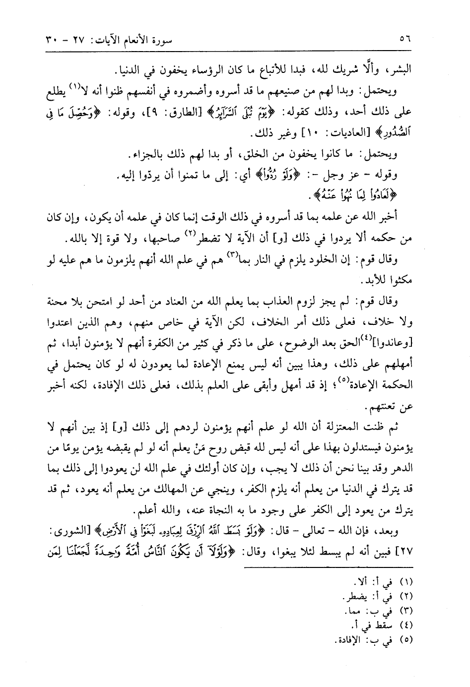 ثم ظنت المعتزلة أن اللَّه لو علم أنهم يؤمنون لردهم إلى ذلك وإذ بين أنهم لا يؤمنون فيستدلون بهذا على أنه ليس لله قبض روح مَنْ يعلم أنه لو لم يقبضه يؤمن يومًا من الدهر وقد بينا نحن أن ذلك لا يجب، وإن كان أُولَئِكَ في علم اللَّه لن يعودوا إلى ذلك بما قد يترك في الدنيا من يعلم أنه يلزم الكفر، وينجي عن المهالك من يعلم أنه يعود، ثم قد يترك من يعود إلى الكفر على وجود ما به النجاة عنه، واللَّه أعلم.