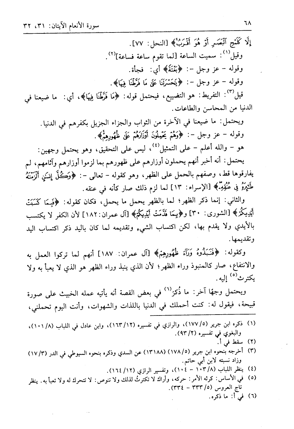 وقوله - عَزَّ وَجَلَّ -: (وَهُمْ يَحْمِلُونَ أَوْزَارَهُمْ عَلَى ظُهُورِهِمْ).