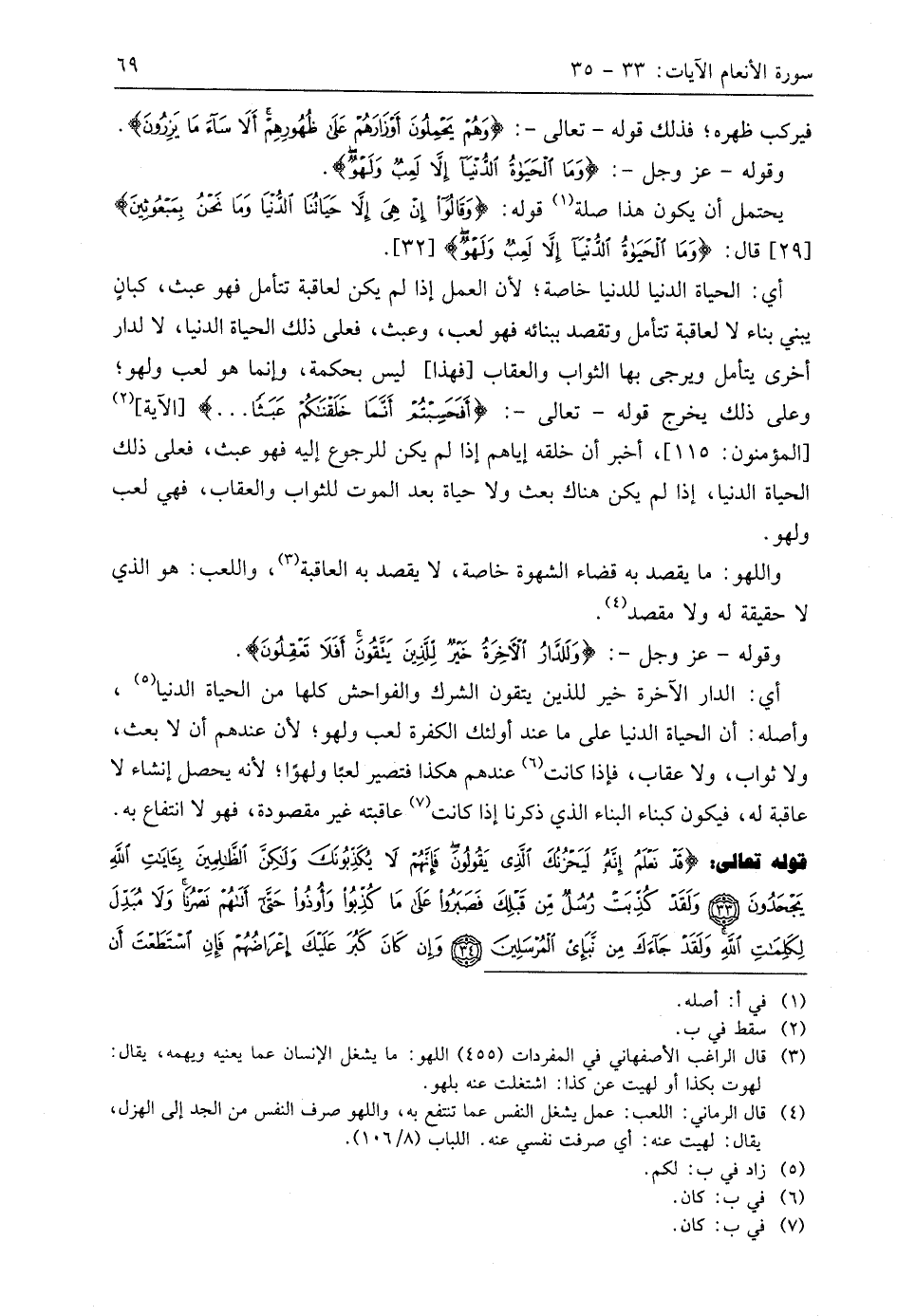 وقوله - عَزَّ وَجَلَّ -: (وَمَا الْحَيَاةُ الدُّنْيَا إِلَّا لَعِبٌ وَلَهْوٌ ... (32)