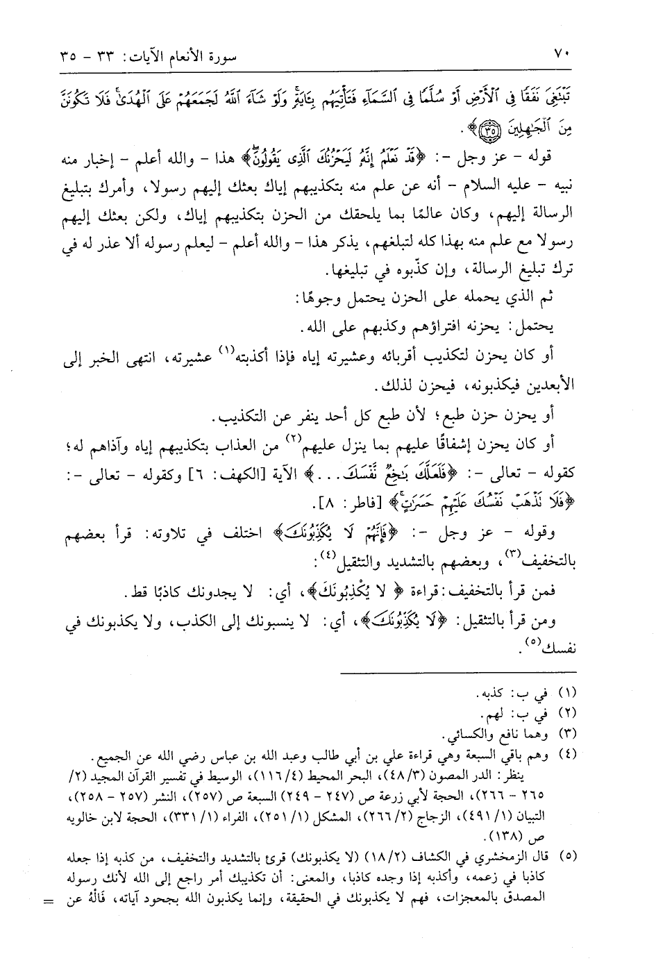وقوله - عَزَّ وَجَلَّ -: (فَإِنَّهُمْ لَا يُكَذِّبُونَكَ) اختلف في تلاوته: قرأ بعضهم بالتخفيف، وبعضهم بالتشديد والتثقيل:
