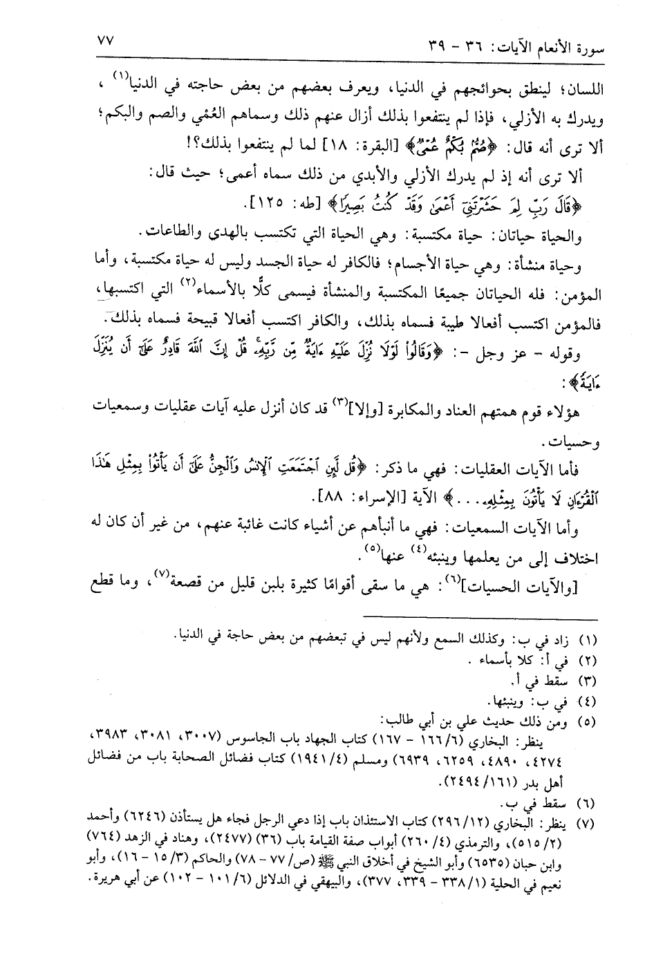 ألا ترى أنه إذ لم يدرك الأزلي والأبدي من ذلك سماه أعمى؛ حيث قال: (قَالَ رَبِّ لِمَ حَشَرْتَنِي أَعْمَى وَقَدْ كُنْتُ بَصِيرًا).
