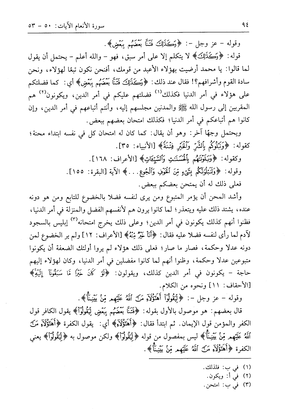 وقوله - عَزَّ وَجَلَّ -: (وَكَذَلِكَ فَتَنَّا بَعْضَهُمْ بِبَعْضٍ ... (53)