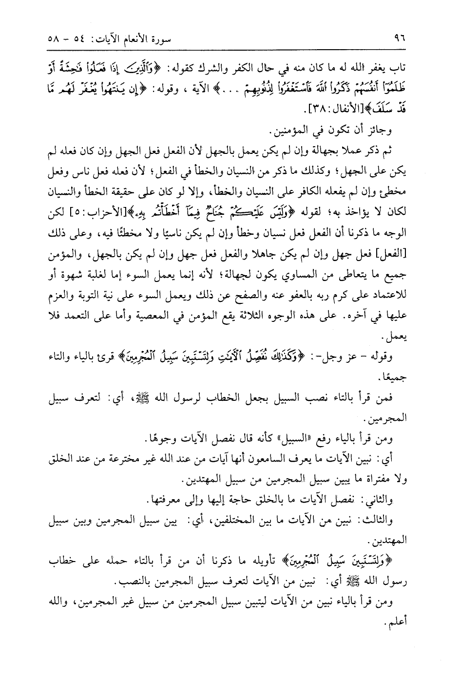 وقوله - عَزَّ وَجَلَّ -: (وَكَذَلِكَ نُفَصِّلُ الْآيَاتِ وَلِتَسْتَبِينَ سَبِيلُ الْمُجْرِمِينَ (55) قرئ بالياء والتاء جميعًا.