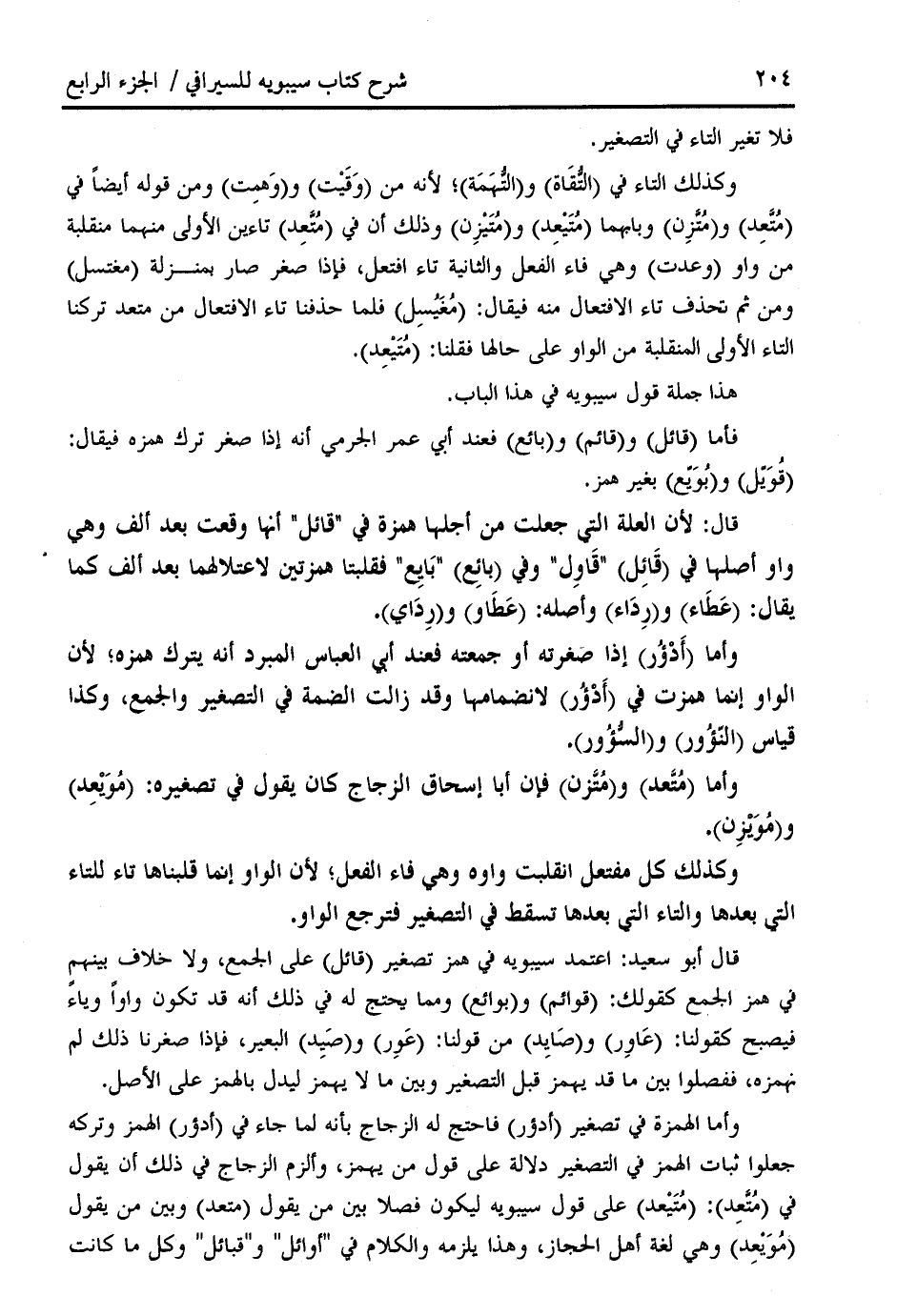 قال أبو سعيد: اعتمد سيبويه في همز تصغير (قائل) على الجمع، ولا خلاف بينهم في همز الجمع كقولك: (قوائم) و (بوائع) ومما يحتج له في ذلك أنه قد تكون واوا وياء فيصبح كقولنا: (عاور) و (صايد) من قولنا: (عور) و (صيد) البعير، فإذا صغرنا ذلك لم نهمزه، ففصلوا بين ما قد يهمز قبل التصغير وبين ما لا يهمز ليدل بالهمز على الأصل.